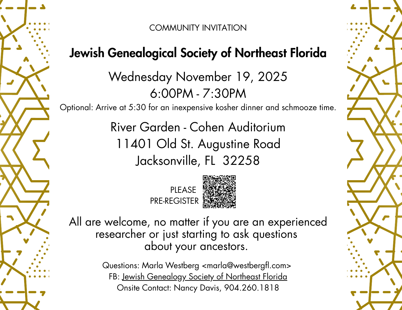 Optional: Arrive at 5:30 for an inexpensive kosher dinner and schmooze time.